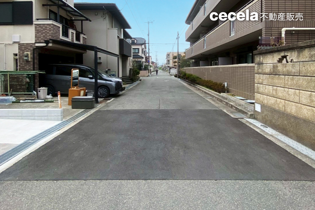 前面道路は約6mと広く、車の出し入れもスムーズです。