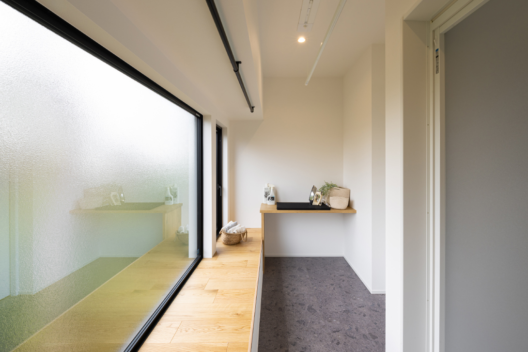 室内には控えめな素材と色が重なり、心地よい静寂が広がる。