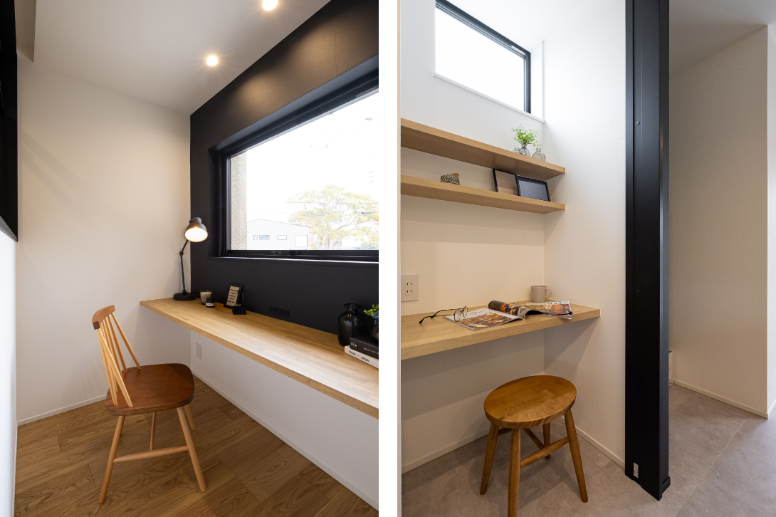 室内には控えめな素材と色が重なり、心地よい静寂が広がる。