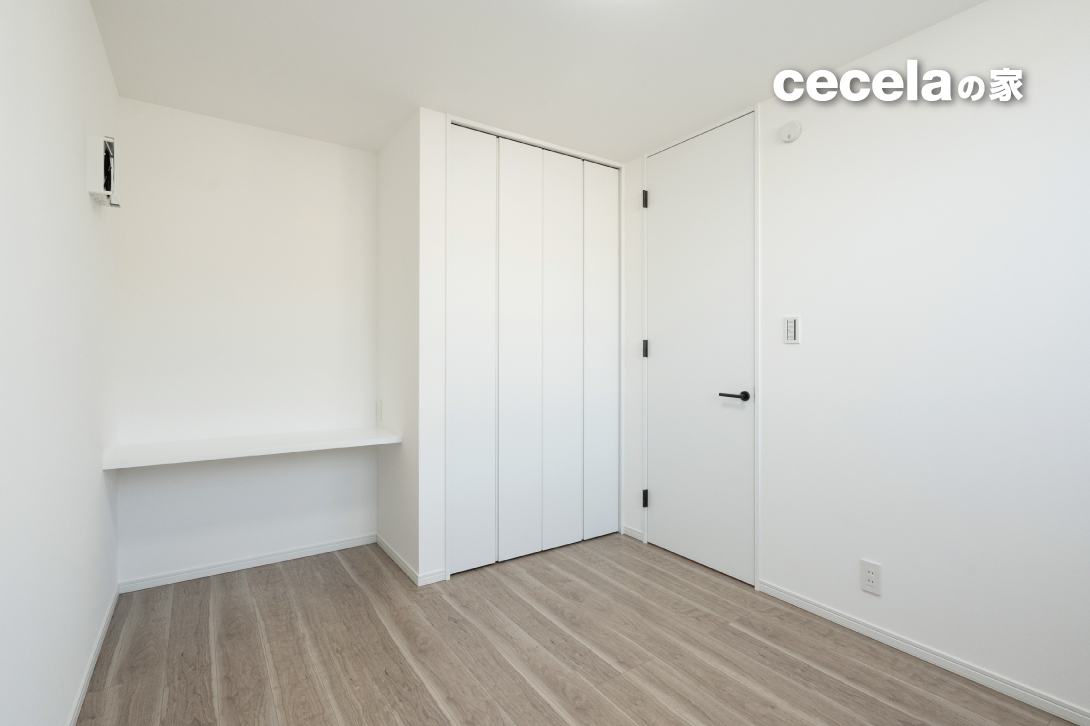 3階には5.4帖の洋室が2部屋。子ども部屋としてもぴったりな同サイズ・対称配置で、兄弟姉妹でも平等感のある分け方が可能です。各室にクローゼットとカウンターが備わっており、勉強スペースやワークスペースにも◎。