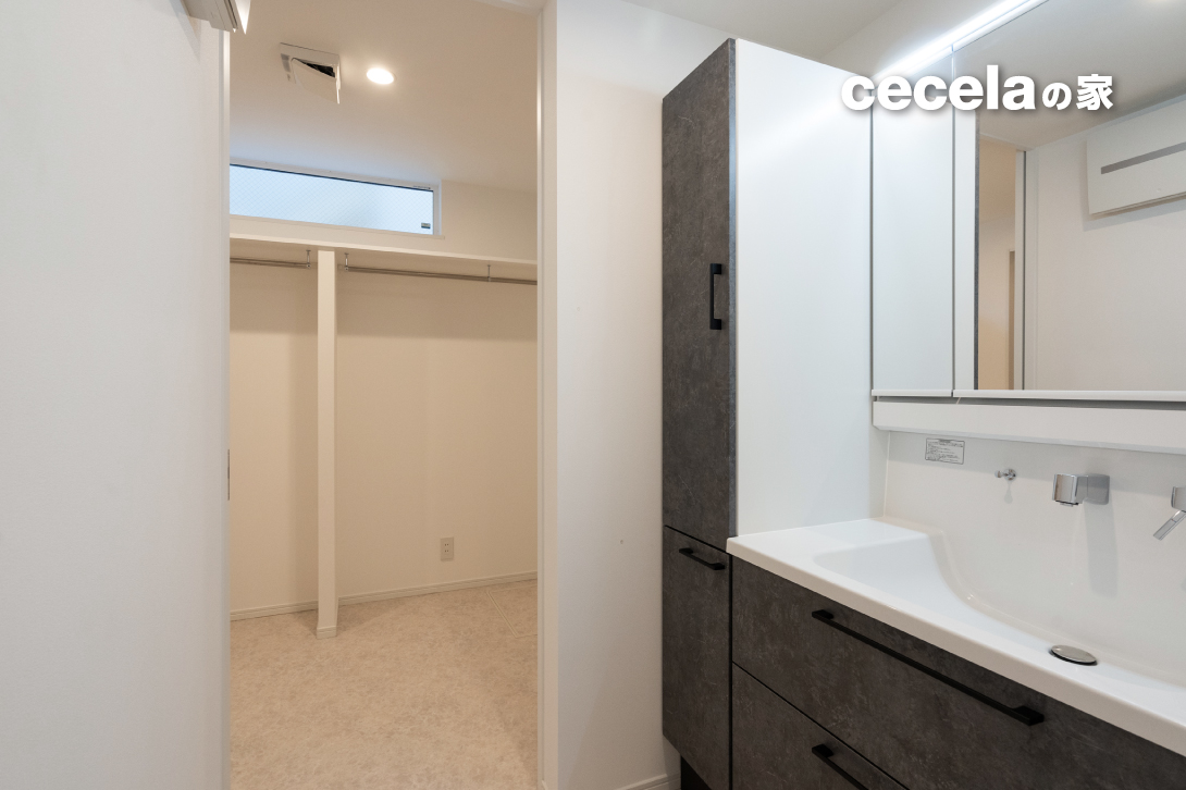 また、洗面室〜ランドリールーム〜浴室を直線でつなげた家事動線の美しさも魅力。
