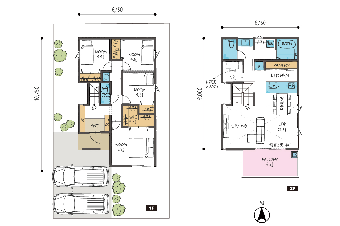 室内は、家族の生活にゆとりと機能性をもたらすプラン。