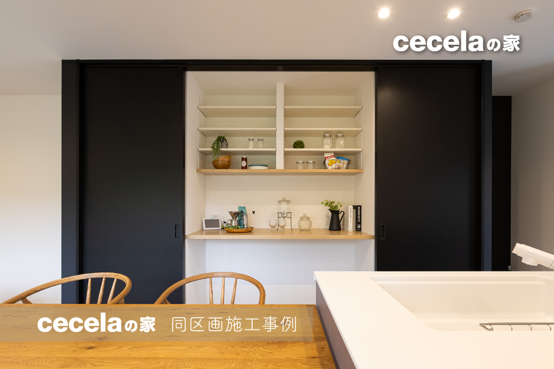 背面には収納棚とパントリーを完備し、食材や調理器具もすっきり整えられます。