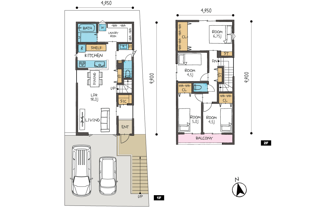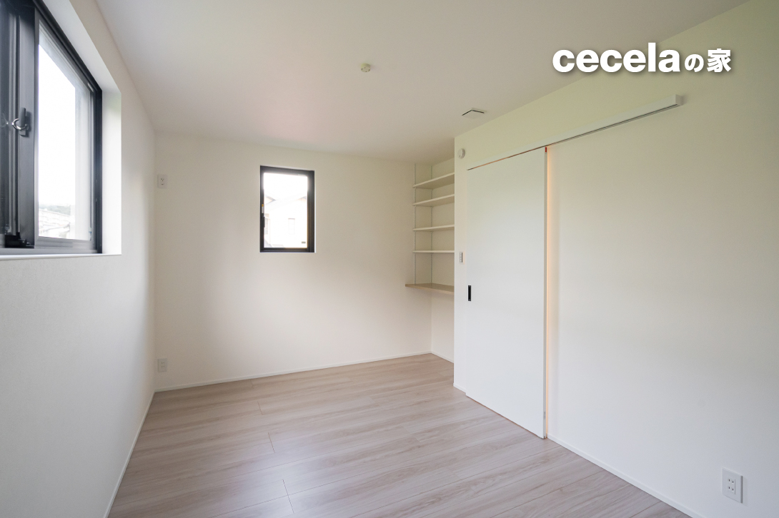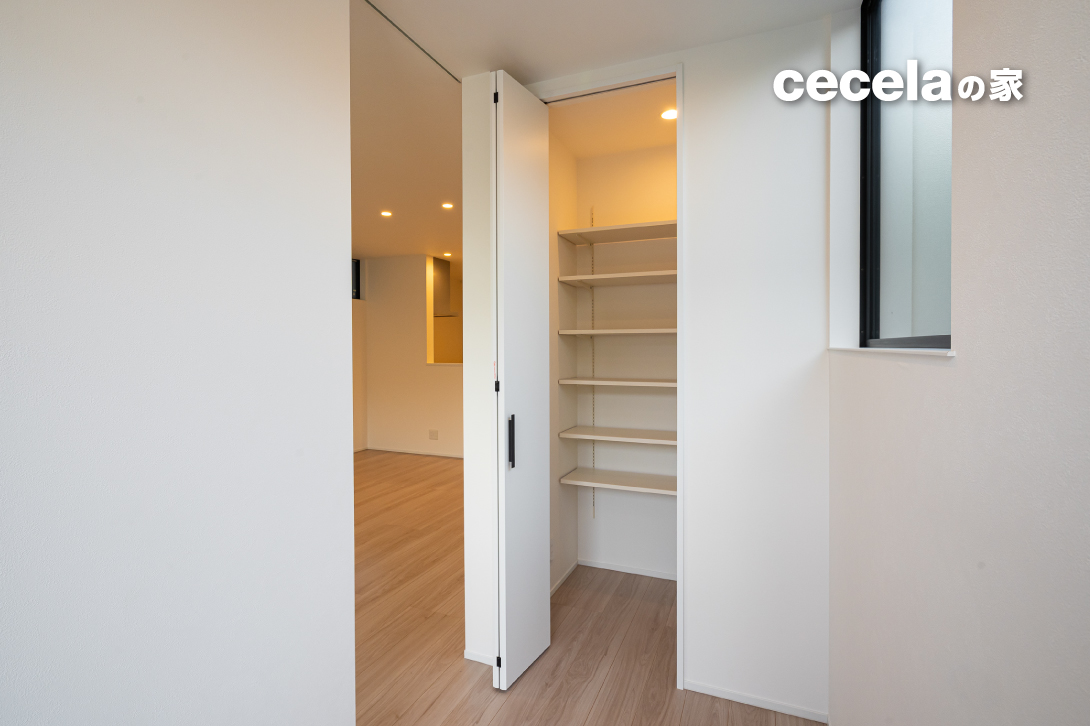 キッチンやダイニングには棚を設け、また2階の各居室にはクローゼットを完備。家全体が整いやすい空間設計となっています。