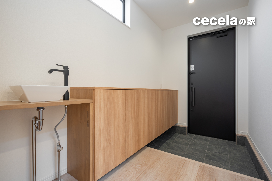 玄関土間や1階ユニットバス部分も床からの冷気をしっかりとシャットアウト。これにより家全体が魔法瓶のようになり外気温に左右されず、室温を逃さない家づくりが可能になります。