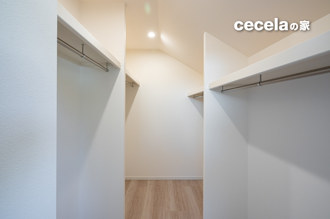 収納も随所に工夫があり、玄関には大容量のシューズインクローゼット、主寝室にはウォークインクローゼットを配置。