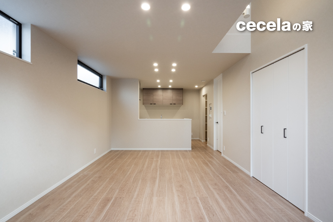 建物は4LDK。LDKは18帖で、リビング上部に吹抜けを設けた開放的な空間構成となっており、リビングに差し込む光と、上下階のつながりが、家族の一体感と快適さを演出します。