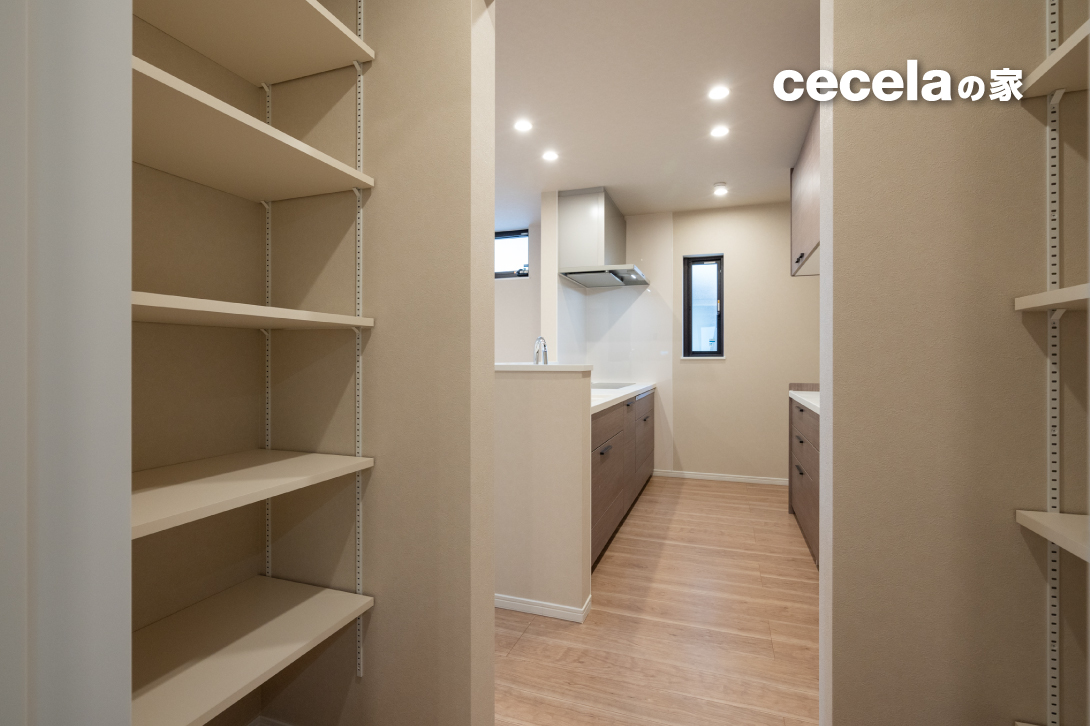 注目は、キッチン横に設けた大容量のパントリー。