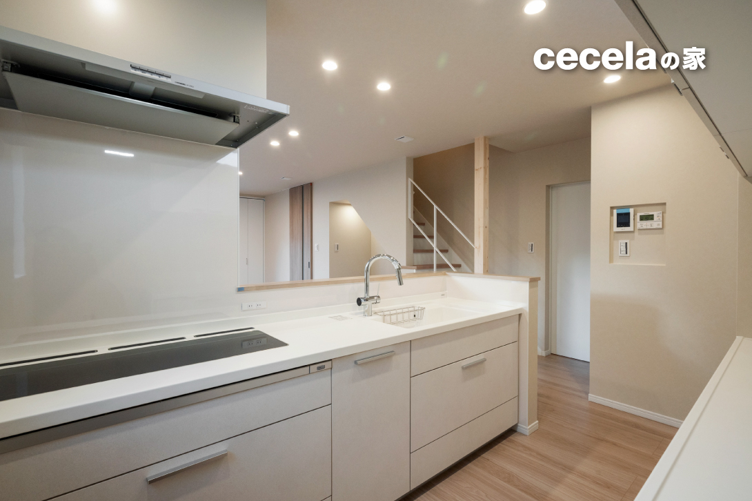 キッチンからは洗面・ランドリーへとつながる動線を確保。