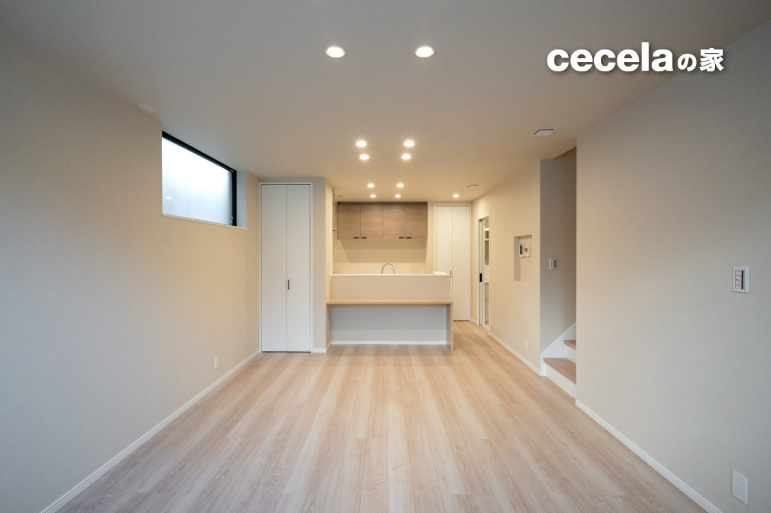 間取りは4LDK。1階LDKは18帖。広く設けた窓からたっぷり光が入る、陽当たりの良い空間です。