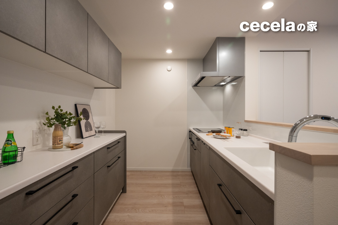 キッチン・洗面・ランドリーがゆるやかにつながる動線設計で、家事移動の負担を軽減。