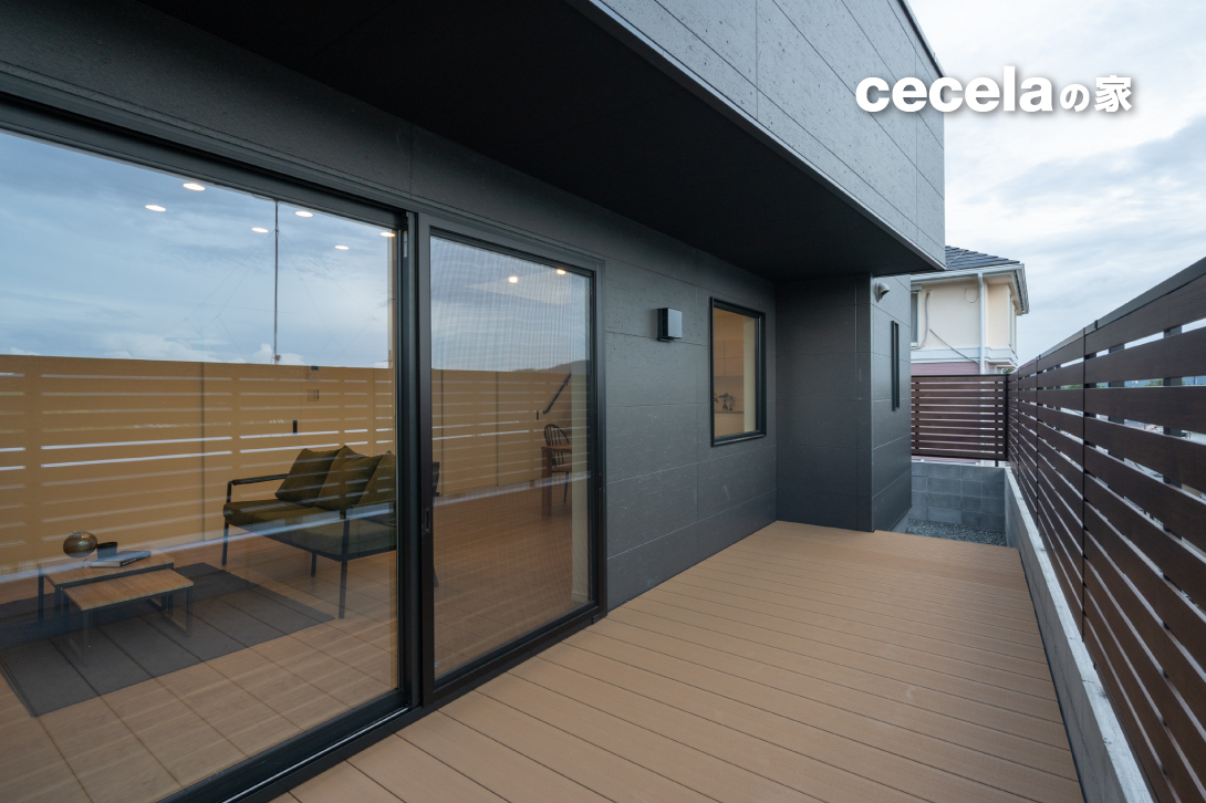 リビングに隣接して配置されたウッドデッキは朝日が入りやすい向きに計画されており、午前中の穏やかな時間を楽しむのに最適。