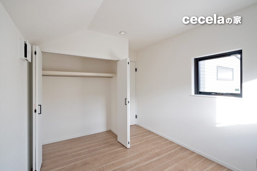 主寝室には大容量の壁面クローゼットを採用。衣類や季節家電、寝具などをしっかり収納でき、日々の身支度もスムーズに。