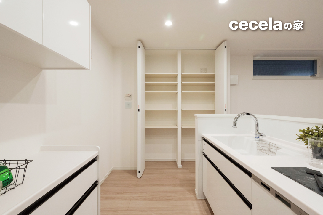 キッチン横にはパントリーがあり、食品ストックや調理家電もスッキリとしまえます。