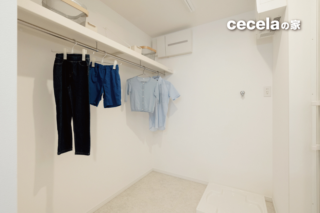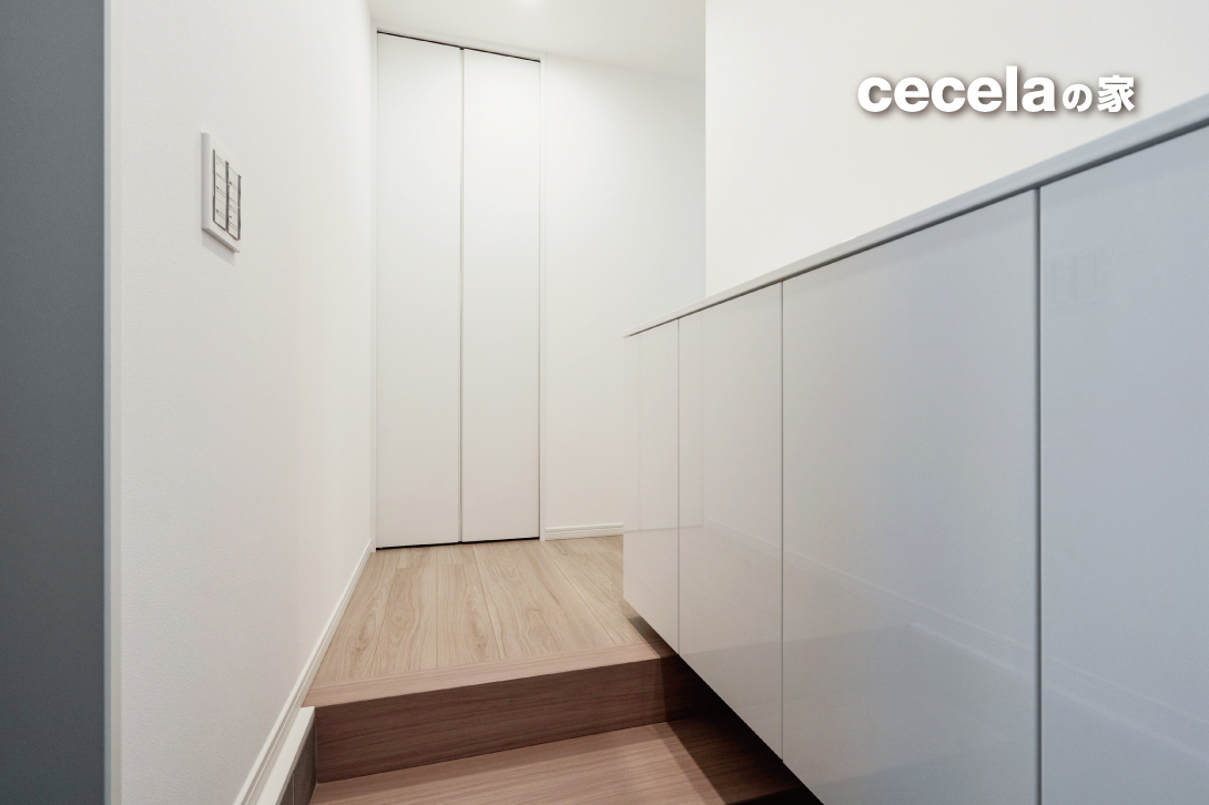 玄関まわりにはシューズクロークや収納棚を設けており、ベビーカーやアウトドア用品、部活動の道具など、外で使う物の収納にも便利です。