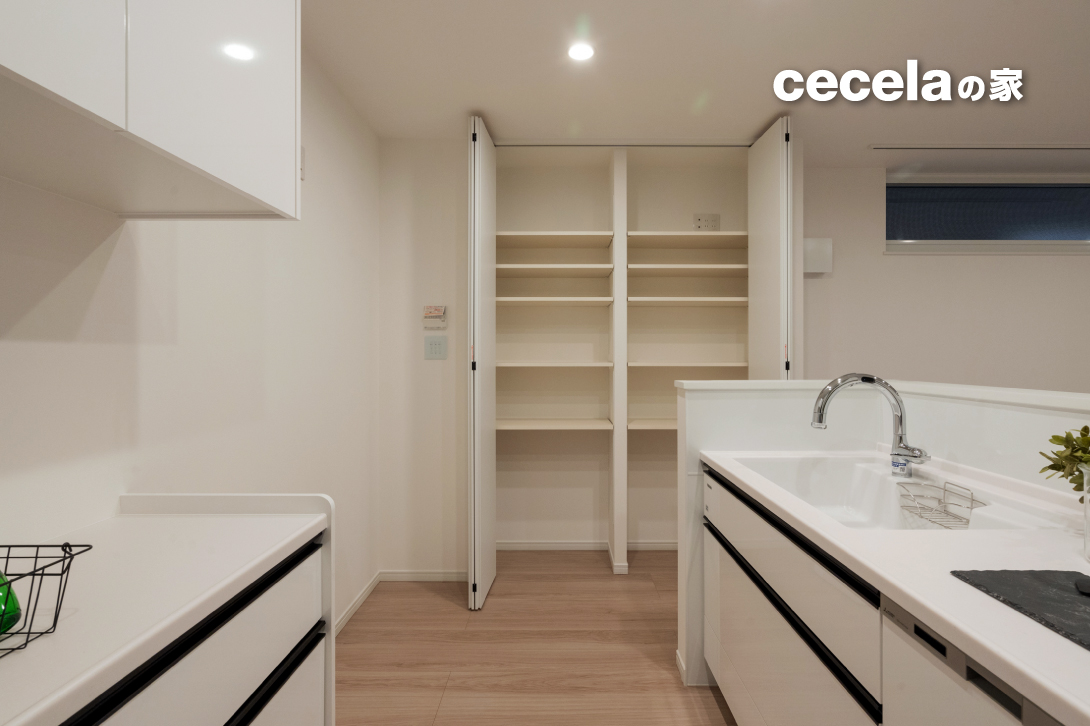 キッチン横にはパントリーがあり、食品ストックや調理家電もスッキリとしまえます。