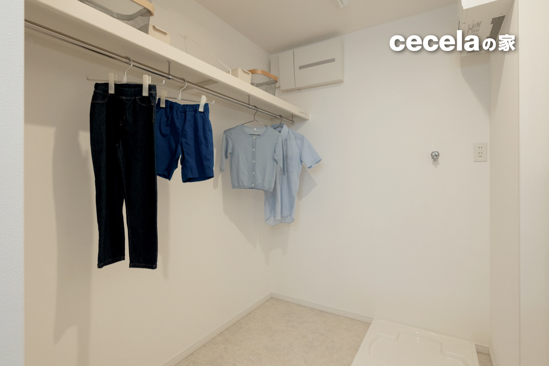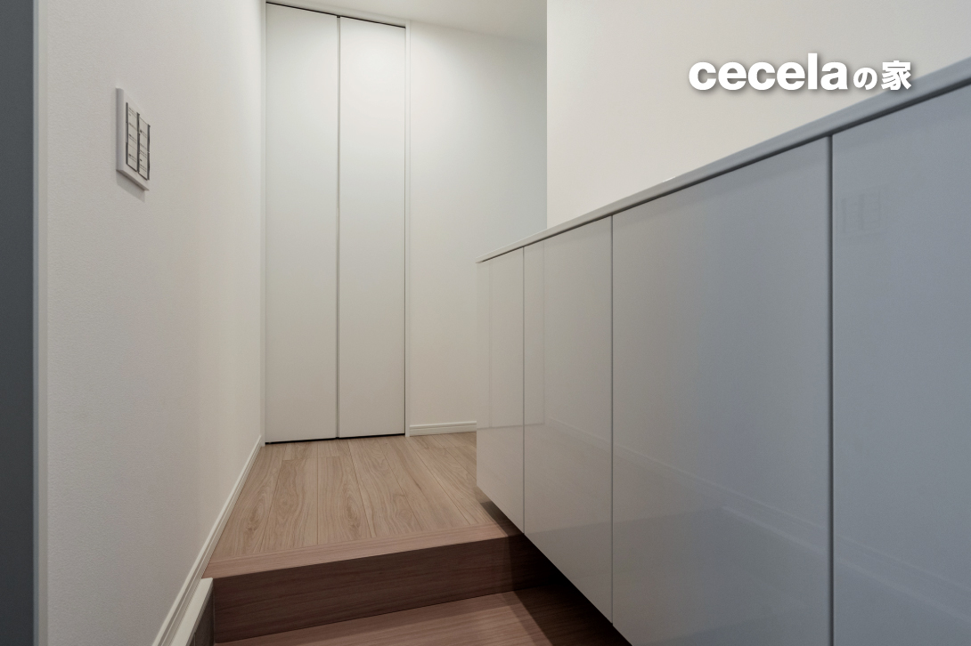玄関まわりにはシューズクロークや収納棚を設けており、ベビーカーやアウトドア用品、部活動の道具など、外で使う物の収納にも便利です。