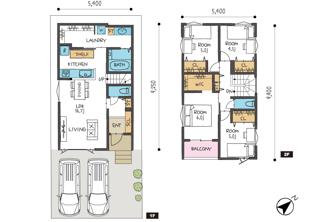 2階は4部屋を確保し、全居室にクローゼットを完備。主寝室にはウォークインクローゼットもあり、収納力も抜群です。