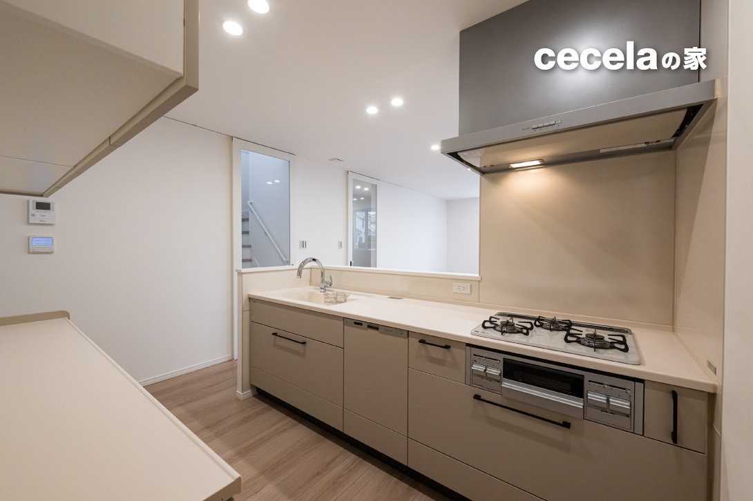 1階は、キッチン・洗面・ランドリーがひと続きになった、スムーズな水回り動線。