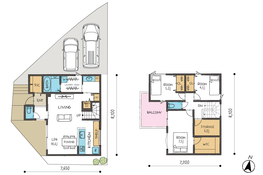 リビング収納やランドリールームなど、日々の家事がスムーズになる工夫も嬉しい設計です。