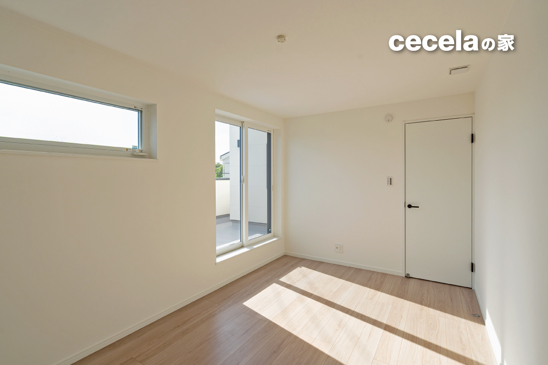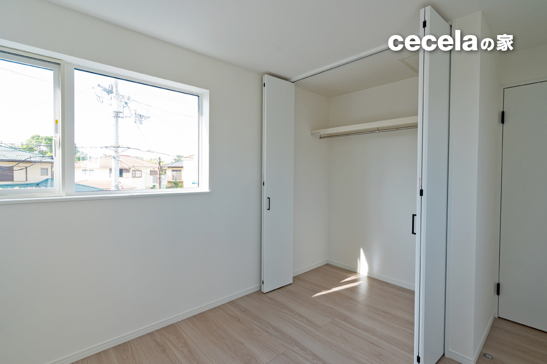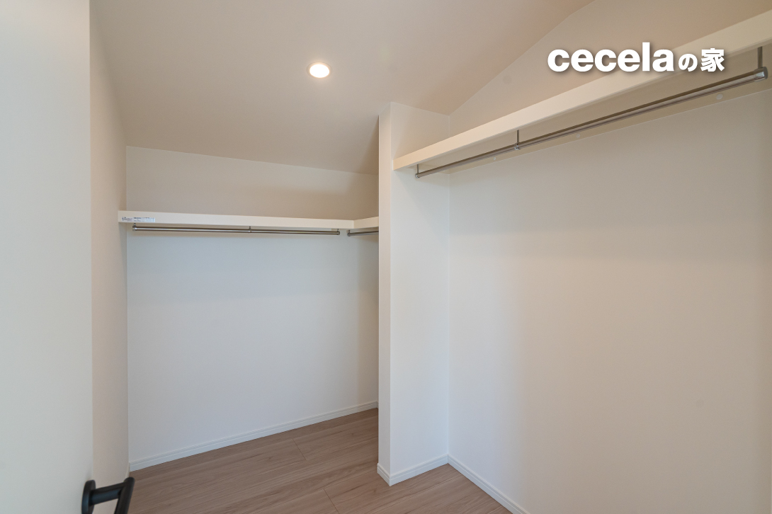 2階は主寝室+子ども部屋に加え、WICや約3帖の納戸など“しまう場所”をしっかり確保し、暮らしが整いやすいのもポイント。