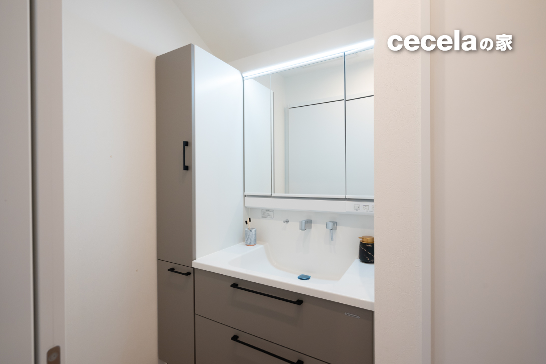 水まわりは2階に集約し、使い勝手の良い動線を実現。洗面室と脱衣室を分け、複数人が同時に使いやすい設計としました。