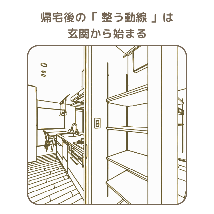 仕事や学校、買い物から帰ってきたとき、家の中に「整う動線」があると一気に心が落ち着きます。