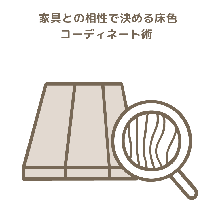 もし「この家具を主役にしたい」というものがあるなら、その家具が引き立つよう、床色は控えめにするのもひとつの方法です。空間全体をひとつのコーディネートとして考えることで、理想の空間がグッと近づきます。
