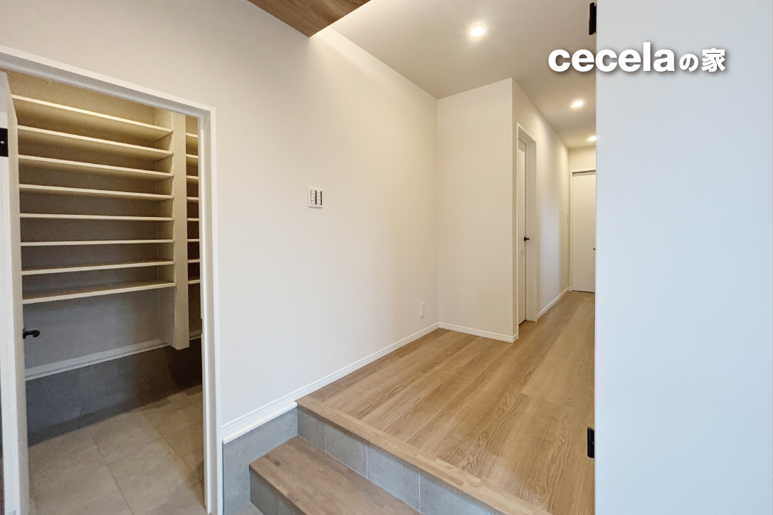 さらに2階にはパントリー、廊下収納も設置されており、全体で7か所以上の収納スペースがあるため、物があふれにくく、暮らしが整います。