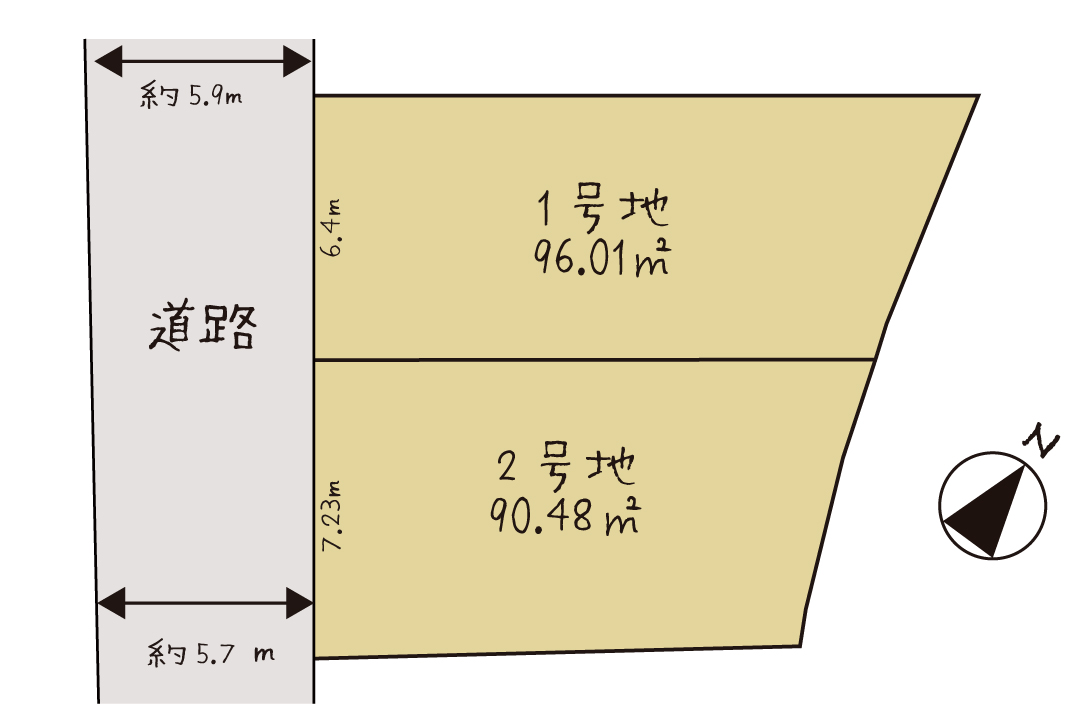 前面道路に対してゆったりとした間口(約7.28m)が確保されており、プランニングのしやすい敷地形状となっています。
