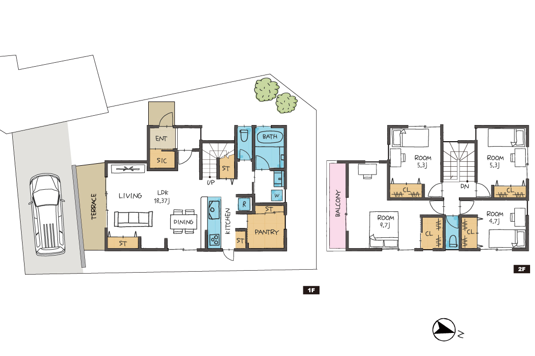 日々の暮らしで気になる収納面も、各所にしっかり配慮。全室にクローゼットを完備しているほか、玄関には大容量のSICを、キッチン背面には大容量のパントリー収納を設けており、生活動線を崩さずスッキリと片付いた暮らしを実現できます。