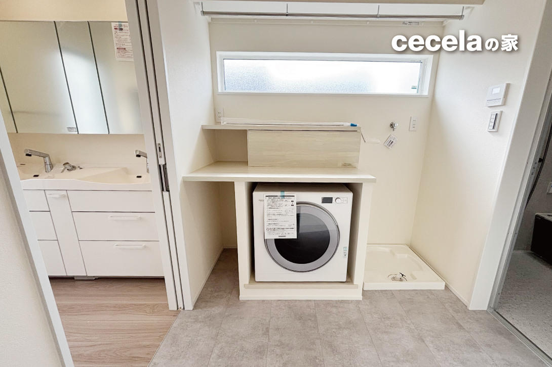 さらにランドリールームも設けられており、洗濯から室内干し、収納まで一連の動作が一ヶ所で完結。