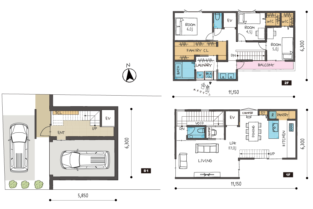 2室にはWICを設け、さらに主寝室の隣にはファミリークローゼットも備えられており、家族みんなの荷物をすっきり整理できます。