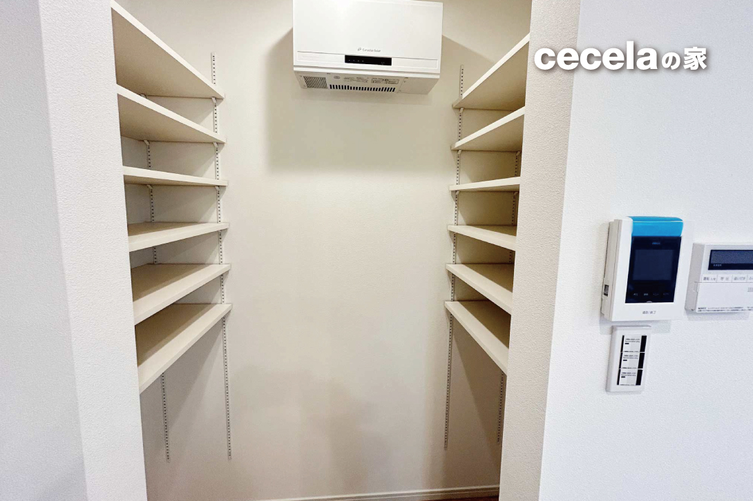 加えてキッチン奥には便利なパントリーもあり、食品や日用品のストックにも便利。