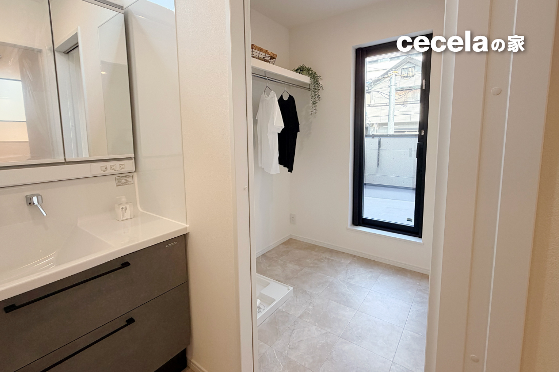 洗濯動線にも配慮されており、2階ランドリースペースを設置。雨の日や夜間も洗濯物が素早く乾き、共働き世帯にも嬉しいポイントです。また、ランドリースペースからそのままバルコニーへ出て外に干すこともできます。