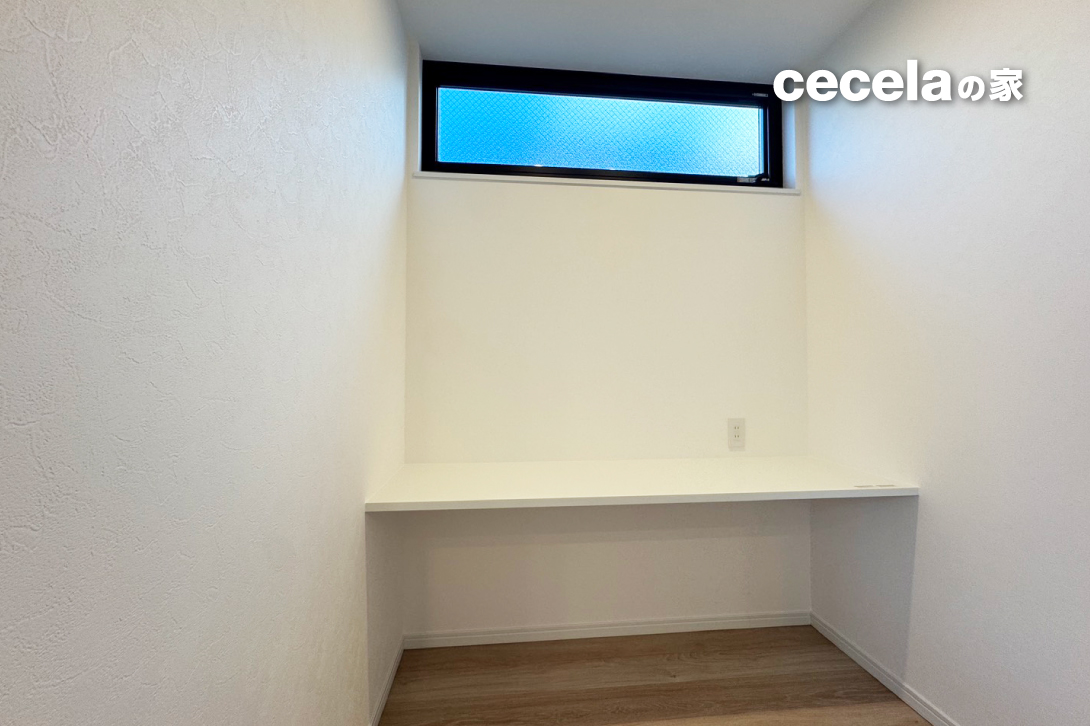 南側にはバルコニーがあり、ダイニング・リビングから明るい光が差し込む心地よいリビング空間が広がります。さらに、約2帖のワークスペースをプランニング。カウンター付きのこもり感のあるスペースで、在宅ワークや勉強などライフスタイルに合わせて多目的にお使いいただけます。LDKの一角にありながら、階段周りで緩やかにゾーニングされているため、集中したい作業にもぴったりです。