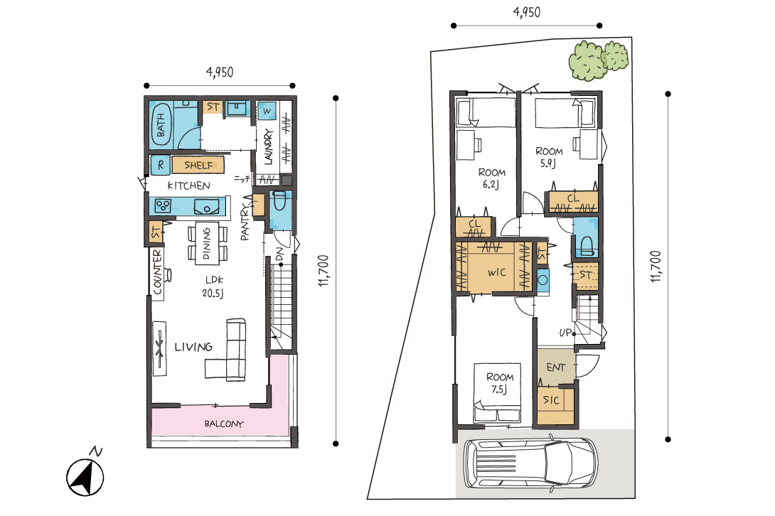 ◆【駐車スペース確保】敷地形状を活かした駐車計画