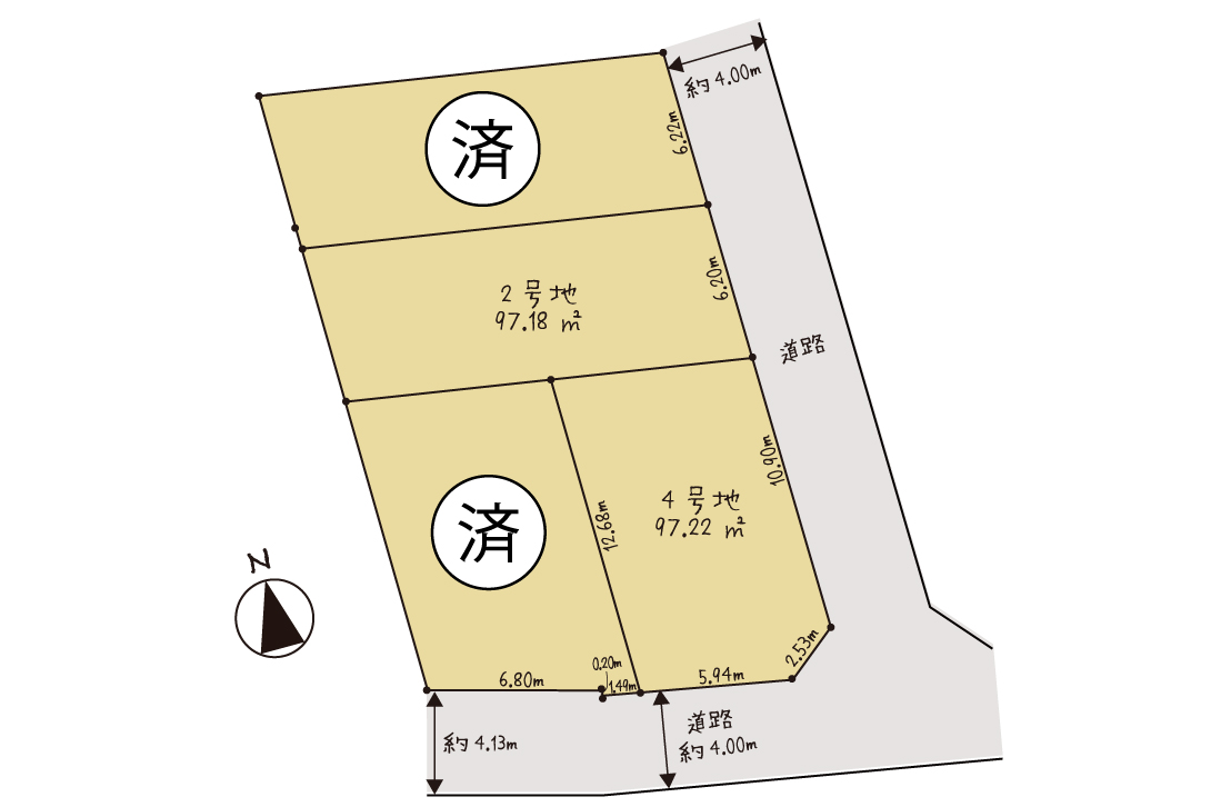 4号地は南東角地に位置し、二方向が道路に面した開放的な区画。
