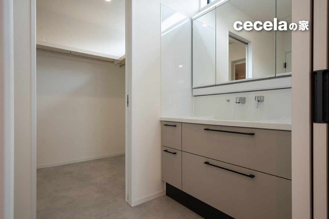 洗面・ランドリー・浴室をキッチン近くに配置することで、効率的な家事動線にも配慮。